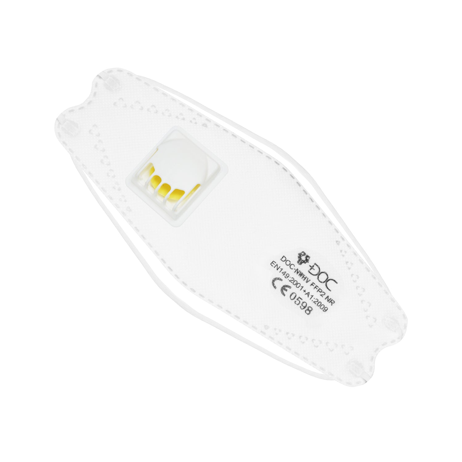 The mask is a non-reusable particle filtering half mask and intended exclusively for personal protection. DOC-NWHV FFP2 fish type mask is designed and produced to protect against both solid and liquid aerosols, which can be only used in the general working environment. The mask cannot be used under the following environment(s):