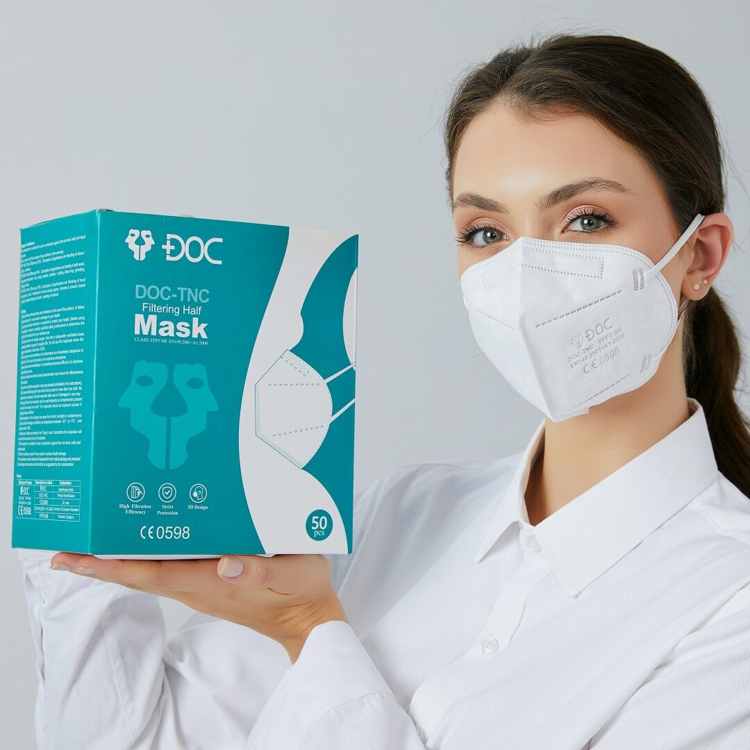 The mask is a non-reusable particle filtering half mask and intended exclusively for personal protection. DOC-TNC Filtering half mask is designed and produced to protect against both solid and liquid aerosols, which can be only used in the general working environment. The mask cannot be used under the following environment(s):